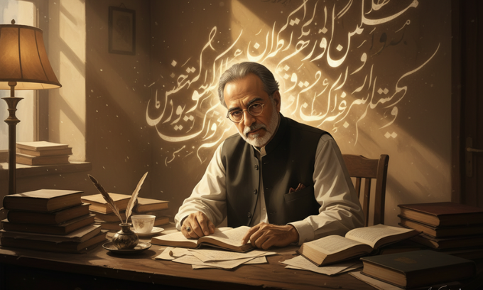 A: He is celebrated for his philosophical Urdu shayari, blending classical ghazal forms with existential themes of love, loss, and rebellion.